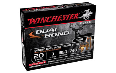 Manufacturer: Winchester Caliber: 20Ga 3" Round Type: Sabot HP Bullet Type: Slug Bullet Weight: Model: Dual Bond Rounds Per Box: 5 Boxes Per Case: 20...
