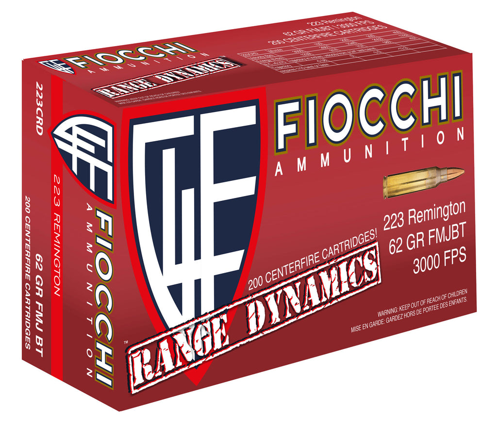 Fiocchi 223CRD Range Dynamics 223 Remington/5.56 NATO 62 GR Full Metal Jacket Boat Tail 200 Bx/ 5 Cs - 200 Rounds