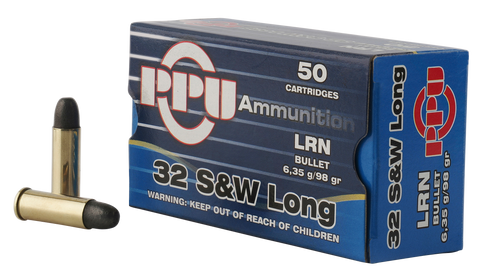 PPU PPH32SW Handgun 32 Smith & Wesson Long 98 GR Lead Round Nose 50 Bx/ 10 Cs