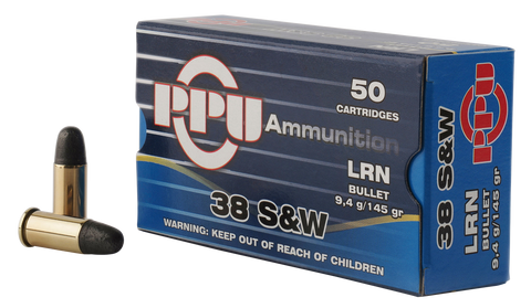 PPU PPH38SW Handgun 38 Smith & Wesson (S&W) 145 GR Lead Round Nose 50 Bx/ 20 Cs