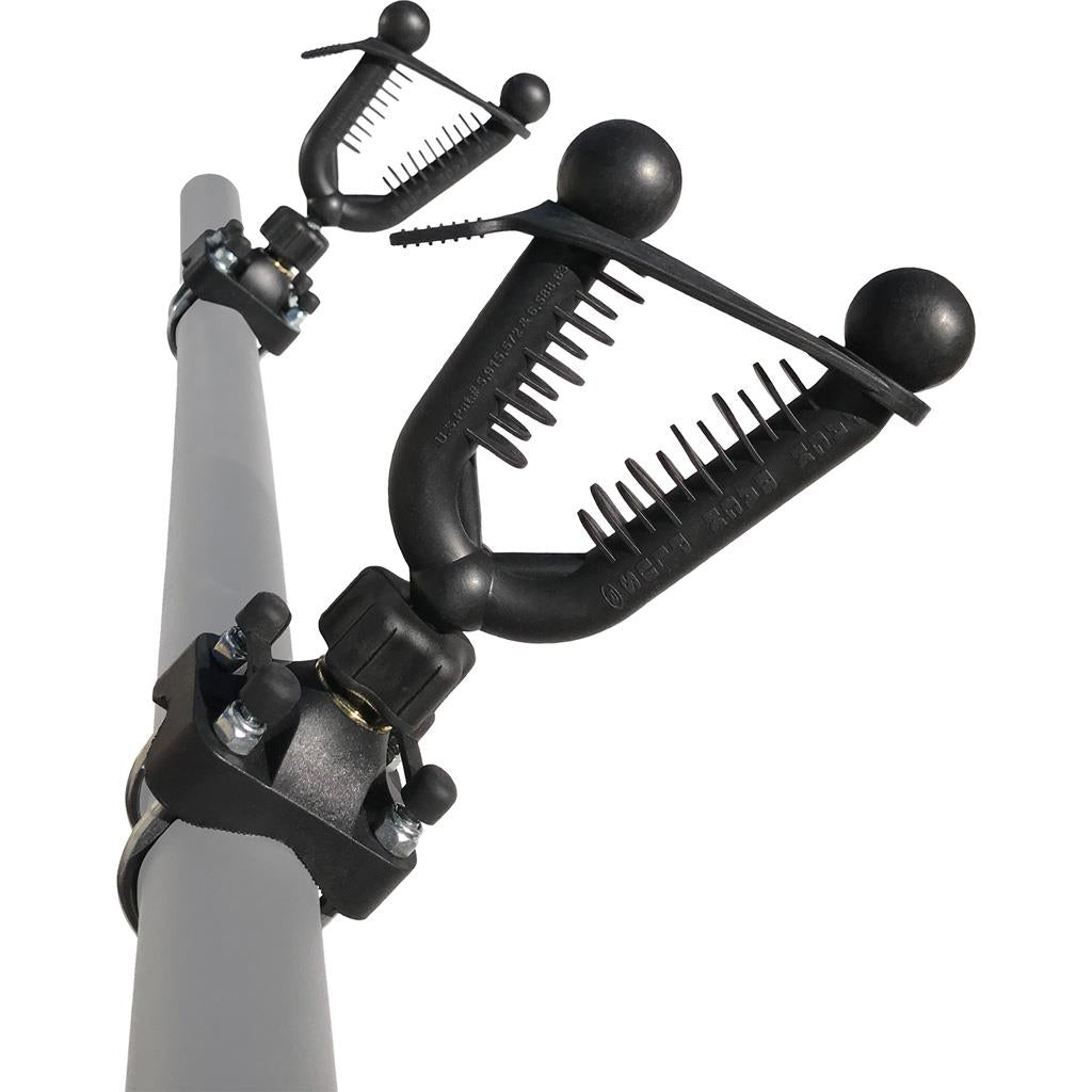 The UTV Pack Rack Plus is a universal mounting solution designed to hold a variety of items by attaching to a UTV roll bar or railing 1” to 1-3/4” in diameter. Steel cores covered in thick, soft rubber and rubber fins provide secure and protective carry for any item you choose. The steel forks tighten and rotate for a custom fit, capable of holding rifles, bows, rods and tools. Pack Racks are made with strong welding and are zinc-plated to resist rust.