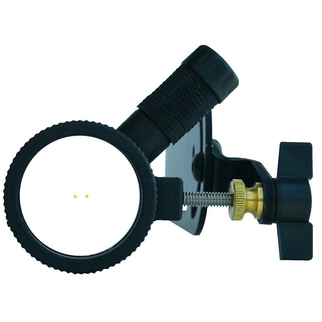 Sight features two fiber optic cables suspended in a 2X magnifying lens. Lens is made from optical grade polycarbonate material with green fiber optic cable. The illuminating dots define an open area in the center of the lens where your front sight pin will be positioned. The lens retainer has a 1.25" inside diameter for a wide field of view and also includes a battery operated LED to illuminate the dots for low light conditions.