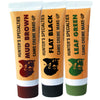 Camo cream make-up comes in 1 oz. tubes that can pack anywhere. Woodland Camo kit includes flat black, mud brown and leaf green.