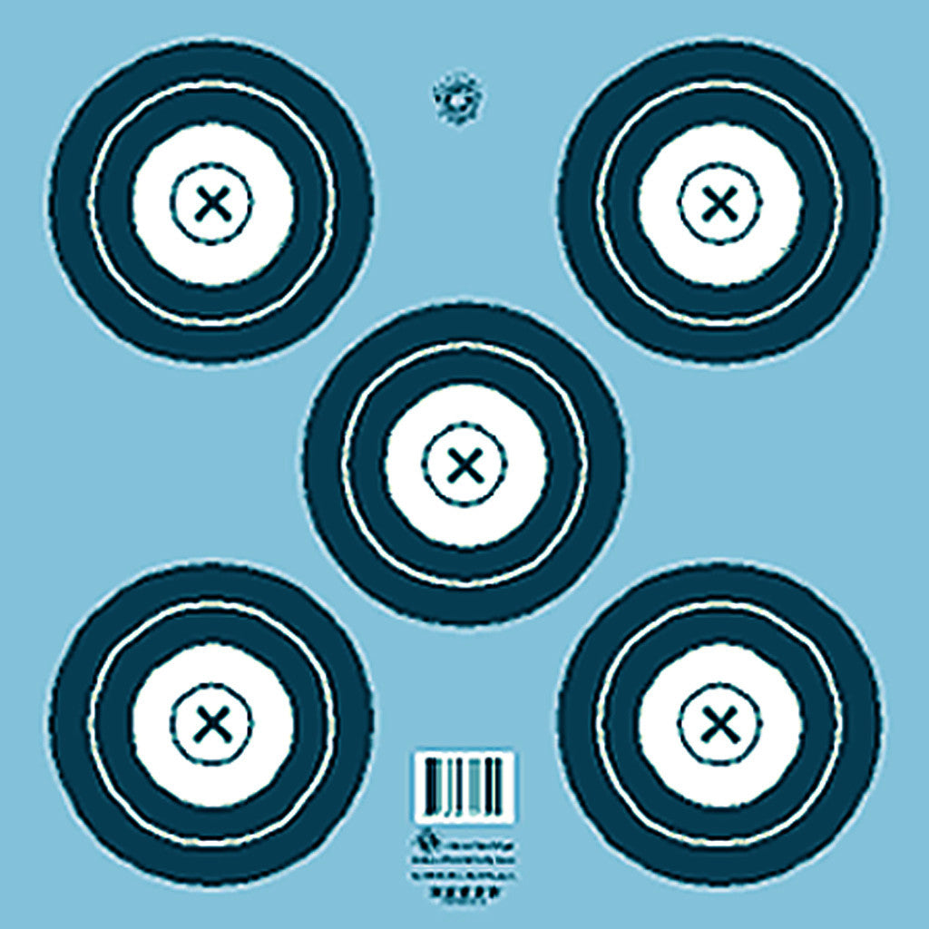 Official target faces for NFAA Indoor competition. Five spot blue/white face. Printed on 75 lb. card stock. Dimensions: 17"x17".