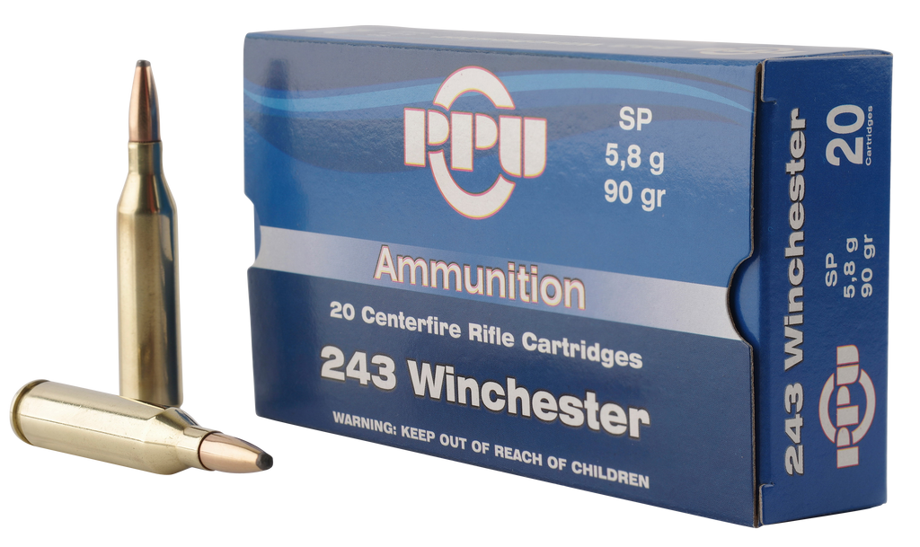 PPU PP2431 Standard Rifle 243 Winchester 90 GR Soft Point 20 Bx/ 10 Cs