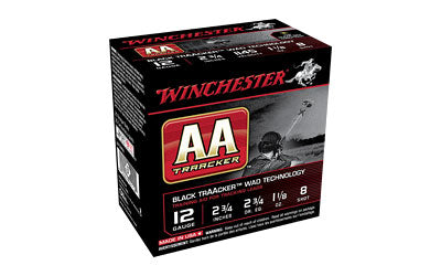 Winchester AA TrAAcker, 12 Gauge, 2.75", #8, Shotshell, Black Hull, 25 Round Box AA128TB